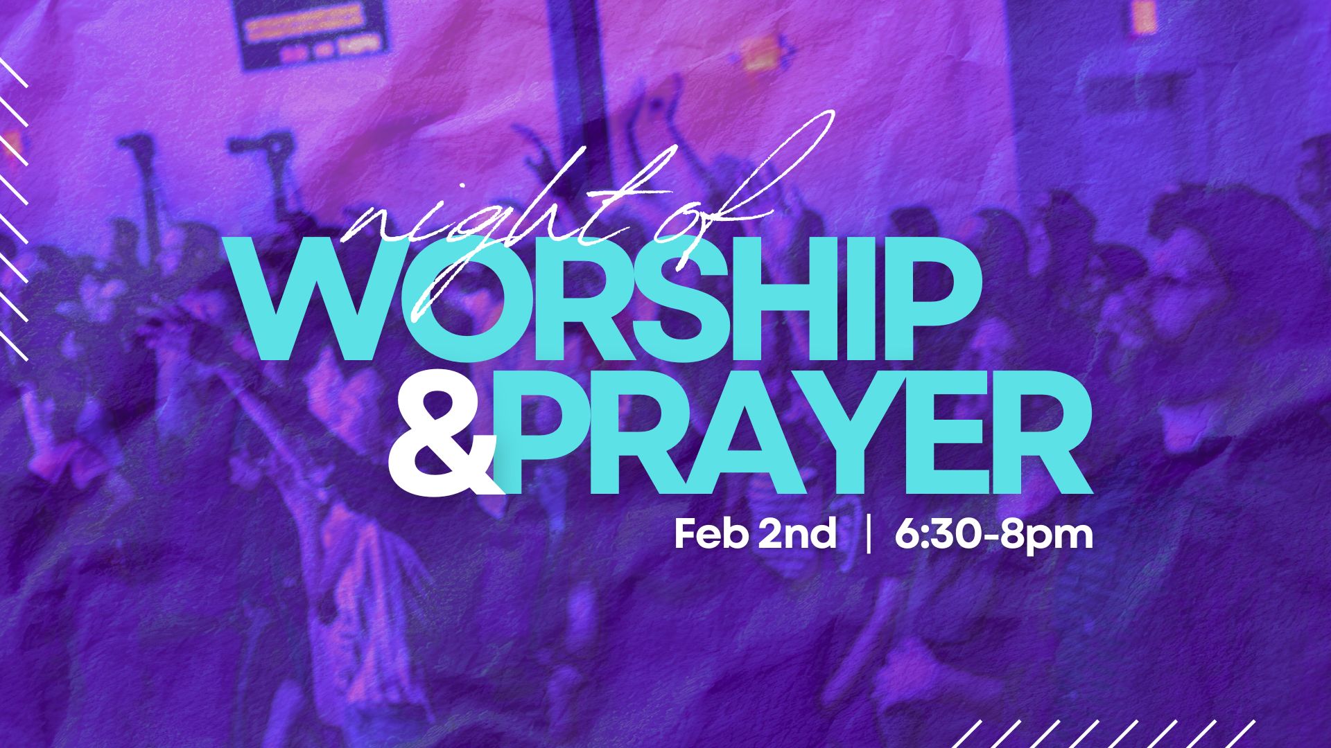 Join us for our next Night of Worship and Prayer! We can’t wait to come together to praise the Lord and pray over our city, community, and each other. We’re expecting a full house, so please register so we can know how many to prepare for.
